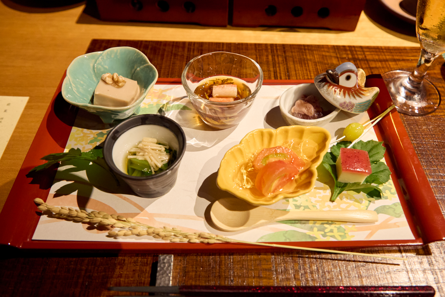 お食事は2階のレストランで。大きな窓の向こうには、軽井沢らしい木立の風景が広がり、初夏の新緑や秋の紅葉など、季節の移ろいを感じながら食事を楽しめます。長野県の地酒やワインも揃い、お料理とのマリアージュを堪能できます。