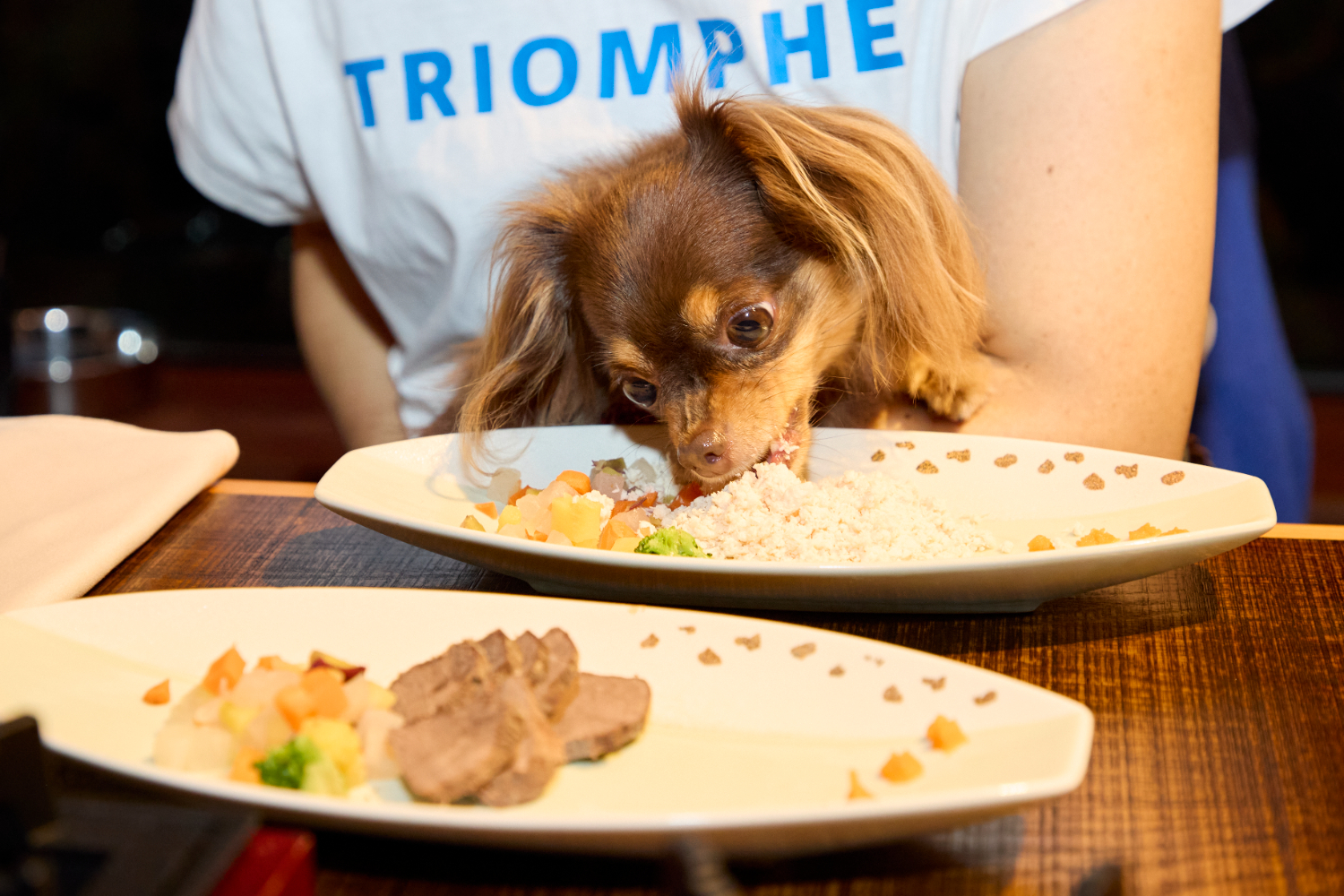 レジーナリゾートでの楽しみのひとつは、愛犬用の多彩なメニュー。お肉もお魚も揃い、サイズも選べるので、体調や好みに合わせてセレクト可能です。この日は馬肉と鶏のささみをシェアしていただき、その美味しさにちゃちゃちゃんも大満足でした。