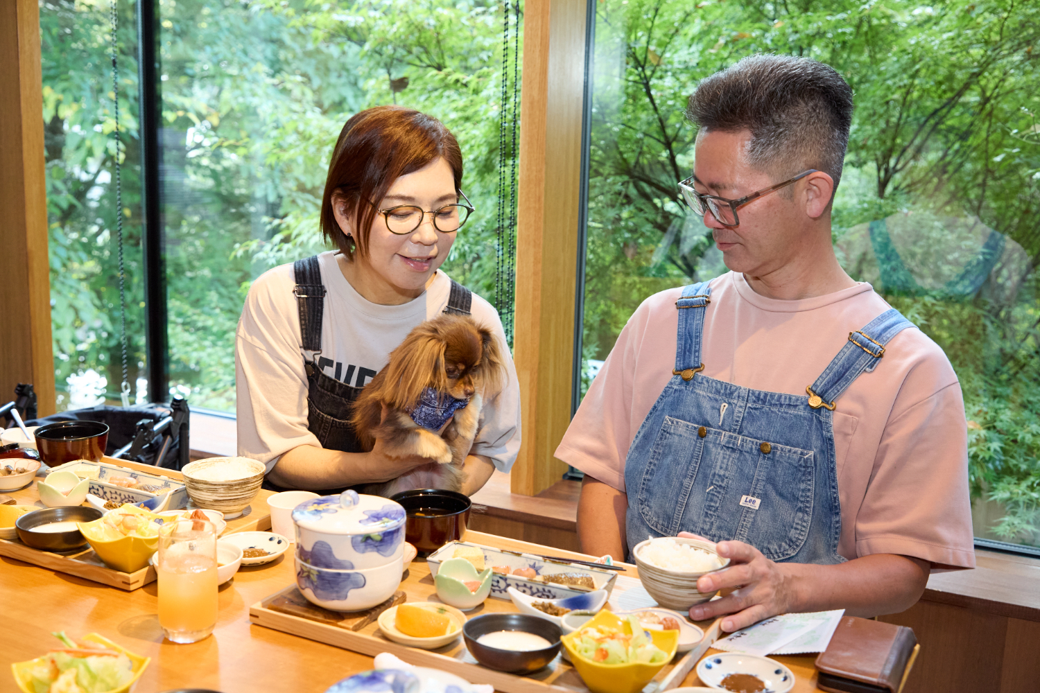 彩り豊かな和の朝食は、栄養満点で一日の始まりにぴったり。もちろん愛犬にも朝ごはんのオーダーが可能なので、一緒に幸せな朝時間を楽しめます。
