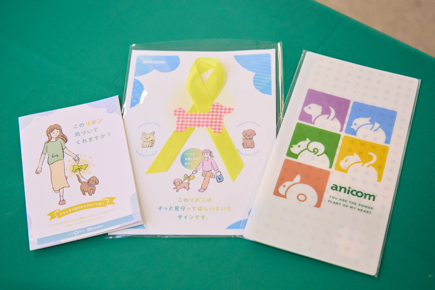 お渡ししたノベルティは、イエローリボンの認知度を高めるだけでなく、実際にイエローリボンを活用してくださる方も増えるように、アニコム社員が心を込めて作成しました!
