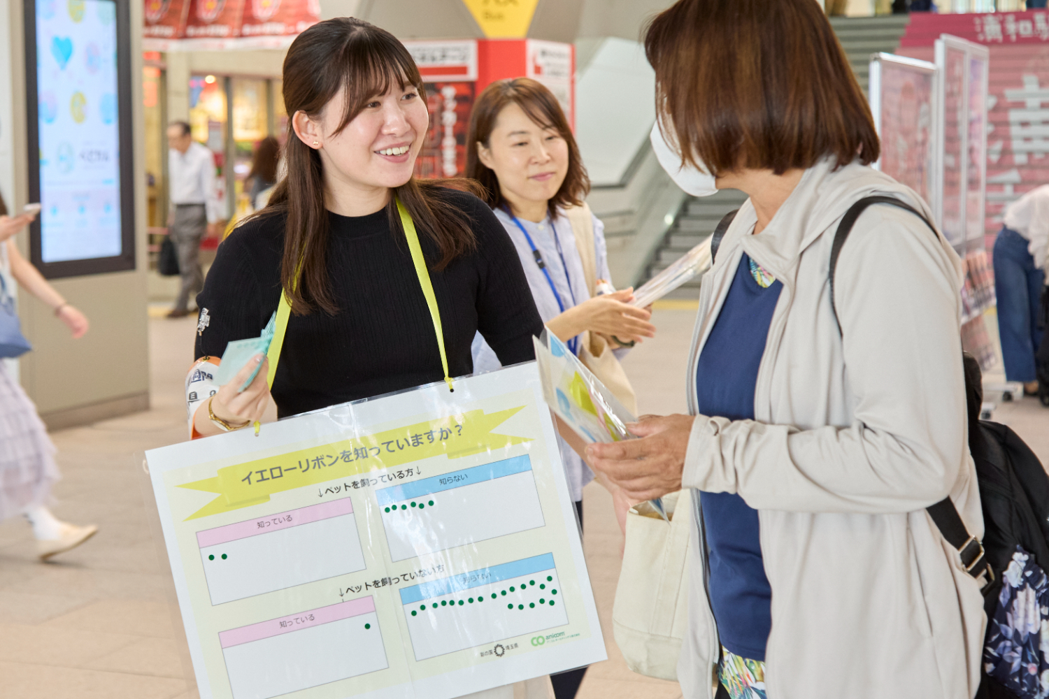 「イエローリボンを知らない」と答えた方々にお話を伺うと、 “イエローリボンが必要となるようなワンちゃんがいること”は知っていても、「イエローリボン」という取り組み自体は知らなかったという声が多く聞かれました。説明をすると驚かれる方も多く、皆さんの関心の高さがうかがえました。
