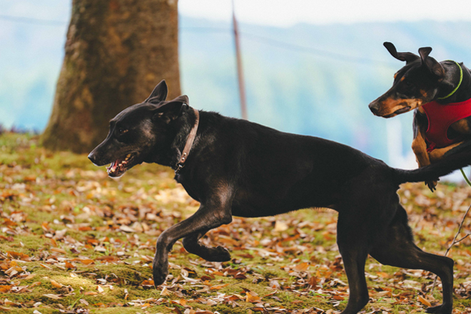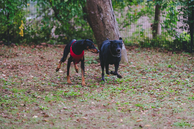 ドッグランで全力で遊ぶうなぎくんとりんちゃん