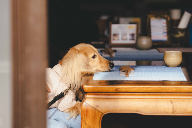 見た目も鮮やかな料理は、里山の恵みをふんだんに活かした和食。飼い主さんが一品一品じっくり味わっている間、畳に敷いたラグの上では、あたたかな日差しを浴びながらまどろむワンちゃんたちの姿も見られました。