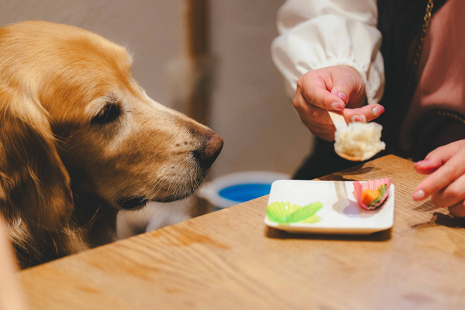 テラス席も店内もワンちゃんと利用できますが、今回は、店内に着席。ドッグランで運動した愛犬のために、犬用メニューを注文する飼い主さんも。「ふだん味わえないおいしいものが食べられるのも、家族と旅行する醍醐味だよね!」と、ワンちゃんたちが言っているように聞こえたのは、きっと気のせいではないでしょう。