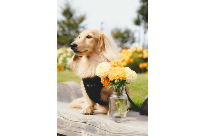 今回のツアーの参加者も、思い思いに愛犬と花々と写真を撮りながら、「気持ちいい~!」と深呼吸をして、早くも解放感にひたっています。見るだけでなく、花に触れてもみようと、愛犬と一緒に花摘み体験も行いました。