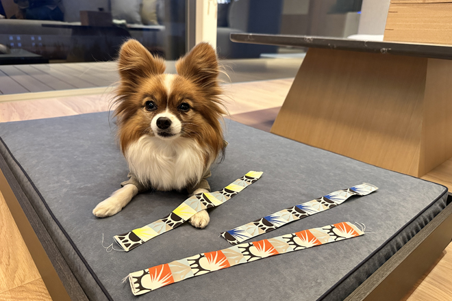そして忘れてはいけないのがチェックイン時に渡されるこちら。3色に分かれたリボン、なんだと思いますか?これはその子の性格に合わせてリードやハーネスなどにつけておく目印。スタッフさんが愛犬に接するときのために、『赤:触らないで 青:人も犬もウェルカム! 黄色:ひとこと声をかけてからにしてね』という3色に分かれているのです。人見知りをしてしまったり、人に近寄られるのが苦手なワンちゃんも、この目印があればちょうどよい距離感で接してもらえるのでストレスが減る。愛犬のことを考えたサービスに感激です。