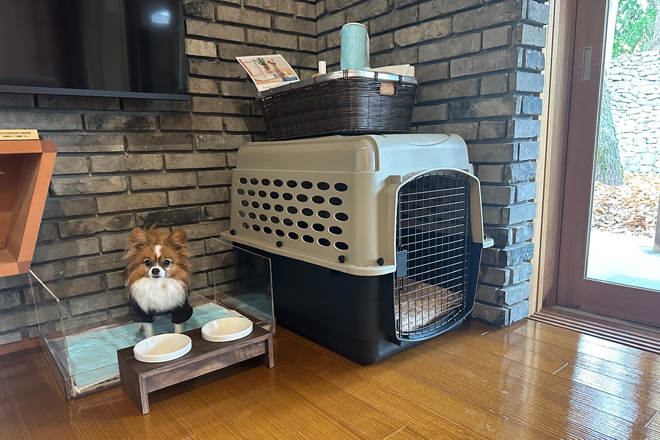 もちろん、こちらのお部屋も愛犬へのアメニティや安全対策は万全。階段でケガをしないように上下ともにゲートがつけられているなど、事故防止対策もしっかりされていました。
