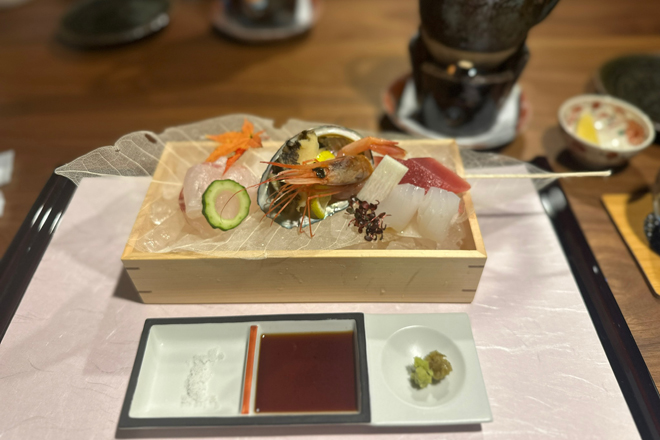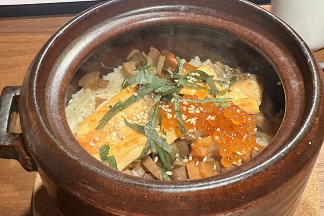 料理長が腕を振るう創作和食は、味はもちろん、盛り付けや器にもこだわった眼福・口福の品々。さらに、〆の炊き込みご飯は多めの量が用意されていて、もし食べきれなかったらおにぎりにしてくれるサービスが。「お宿の周辺にコンビニなどがないので、もし夜遅くに小腹が減ったときにどうぞ」というスタッフさんのお言葉に心が暖かくなりました。