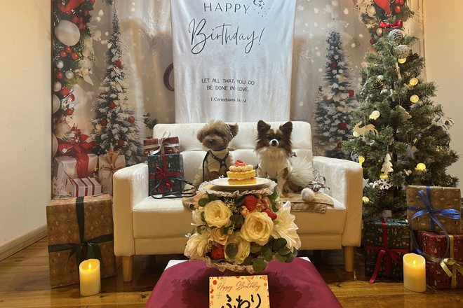 宿泊した日は取材班の愛犬の誕生日の2週間前でしたが、思いがけないサプライズが! 愛犬用のケーキと特製フォトブースで撮影のプレゼントをしていただいたのです。宿泊日が記念日や誕生日の月であれば、当日でなくともプレゼントサービスを受けられるとのこと。予想していなかった素敵なギフトに愛犬はもちろん、飼い主にとっても忘れられないひとときになりました。