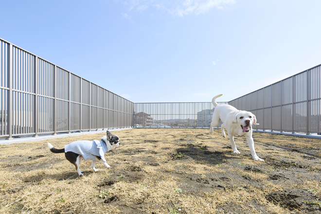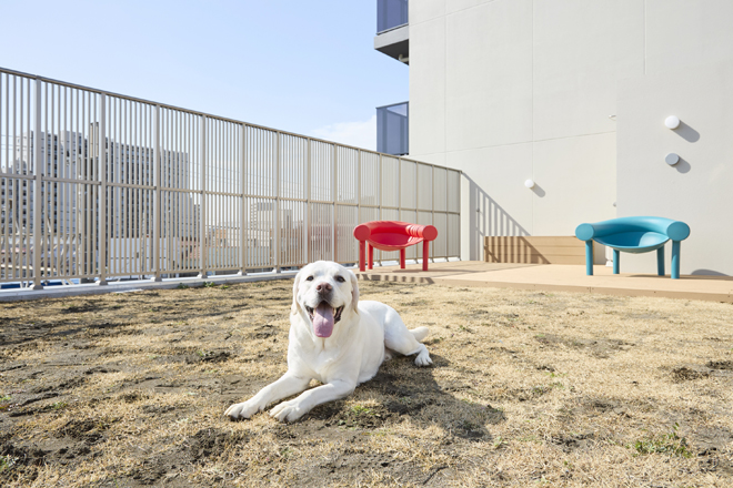 4階には、100㎡超の天然芝ドッグランを設置。わざわざ遠くの公園へ出かけなくても、日常の中で十分な運動時間を確保できます。