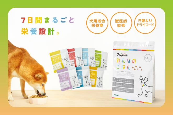 その名の通り1週間日替わりで7種類の味が楽しむことができ、愛犬が私たちと同じように日々の食を楽しめるのはもちろん、さまざまな食材を摂ることができるため、健やかな暮らしを保つことにも繋がります。